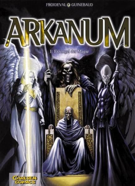 Andererseits ist es dem Autor in „Arkanum“ – ausgehend vom ersten Band zumindest – tatsächlich gelungen, ebenfalls eine faszinierende Geschichte zu entwerfen, in der die Helden bis dato zwar noch nicht so markant und charismatisch auftreten wie in Froidevals größerem Werk, die aber vom Spannungslevel her betrachtet absolut gleichwertig ist. Wie erwartet startet der Autor mit einer sehr pompösen Einleitung, die dem Leser zunächst die Rahmen- bzw. Vorgeschichte näher bringt und schon mal einen groben Überblick darüber verschafft, mit welch finsteren Kreaturen man es im Laufe der Serie zu tun haben wird. Besonders die Darstellung der zwölf Arkanerzengeln ist dabei sehr gut gelungen; Furcht einflößende, majestätische Erscheinungen hat Zeichner Guinebaud hier geschaffen, und jeden Einzelnen von ihnen umgibt dazu noch eine ganz spezielle Aura.